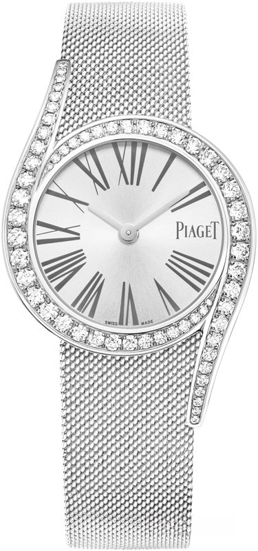 Часы Piaget Limelight Gala 26 mm представлены в корпусе из белого золота 18к размером 26 мм и водонепроницаемостью 30 м. Внутри корпуса установлен кварцевый механизм, Калибр Piaget 59P. На серебристом циферблате отображаются часы, минуты. Часы комплектуются браслетом из белого золота 18к. Корпус инкрустирован белыми бриллиантами.