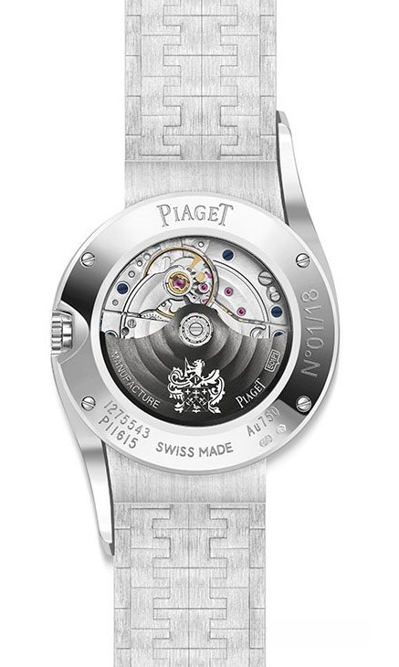 Часы Piaget Limelight Gala 32 mm представлены в корпусе из белого золота 18к размером 32 мм водонепроницаемостью 30 метров. Внутри корпуса находится автоматический механизм, Калибр 501 P 1. На циферблате с белыми бриллиантами отображаются часы, минуты. Часы поставляются на браслете из белого золота 18к. Корпус инкрустирован белыми бриллиантами и синими сапфирами. Серия ограничена - 18 шт.
