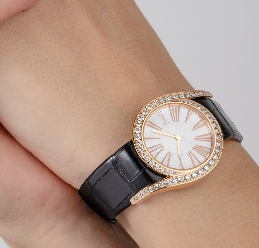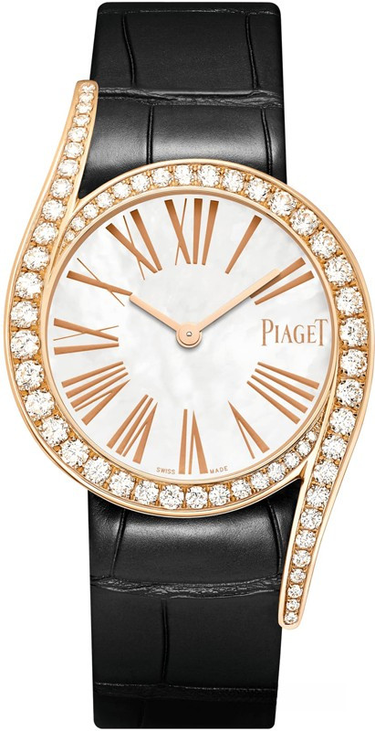 Часы Piaget Limelight Gala 32 mm представлены в корпусе из розового золота 18к размером 32 мм водонепроницаемостью 30 метров. Внутри корпуса находится механизм с ручным заводом, Калибр 430P. На белом жемчужном циферблате отображаются часы, минуты. Часы поставляются на ремешке из кожи аллигатора с вставкой из розового золота 18к. Корпус инкрустирован белыми бриллиантами.