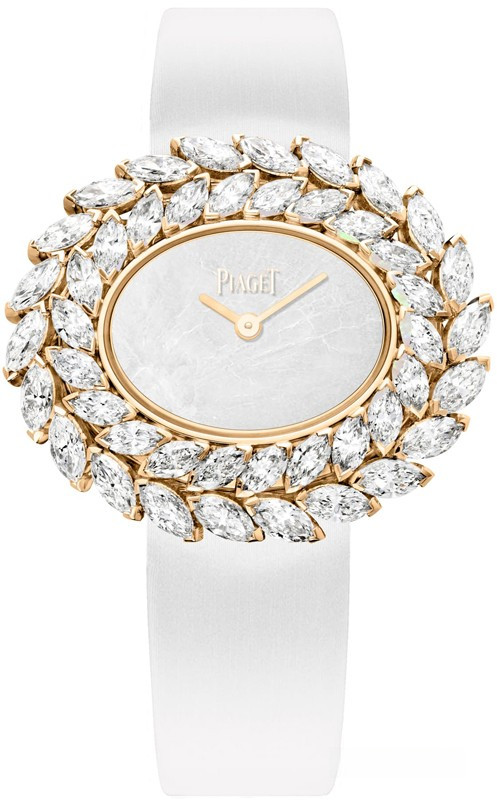 Часы Piaget Limelight Quartz 30 mm представлены в корпусе из розового золота 18к размером 35 х 30 х 7.3 мм водонепроницаемостью 30 метров. Внутри корпуса находится кварцевый механизм, Калибр Piaget 56P. На белом жемчужном циферблате отображаются часы, минуты. Часы поставляются на сатиновом ремешке с вставкой из розового золота 18к. Корпус инкрустирован белыми бриллиантами.