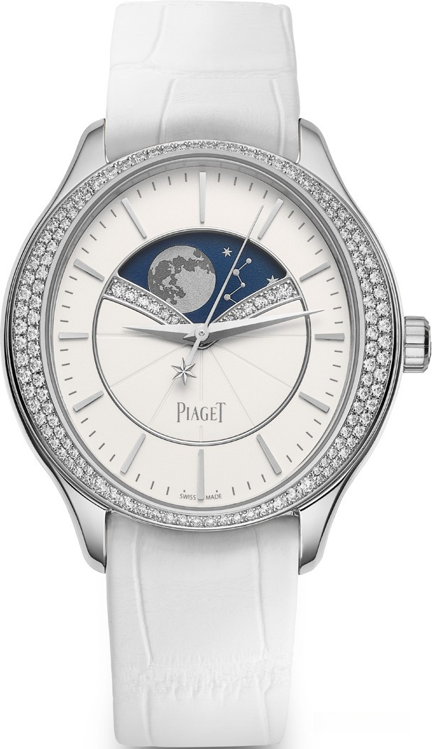Часовая компания Piaget представила новейшую часовую линию, посвященную женщинам. Часы с усложненными часовыми функциями полностью разработаны и созданы La Côte-aux-Fées и Geneva. Новинки открывают новую главу в истории Piaget, проявляя искреннюю любовь к прекрасному полу. Транслируя идеальное часовое мастерство, выбрав для этого калибр с захватывающим традиционным часовым усложнением: индикатором Фазы Луны. Привлекает внимание корпус выполненный из белого золота 18к диаметром 36 мм. Часы Limelight Stella наделены астрономической функцией с воспроизведением лунного цикла. 135-зубчатое колесо отвечает за появление разных фаз Луны в окружении звезд. В это же время стандартная фаза Луны отстает на один день за каждые 2,5 года. Такая система гарантирует, что часы Limelight Stella требуют подзавода, только после 122 лет.