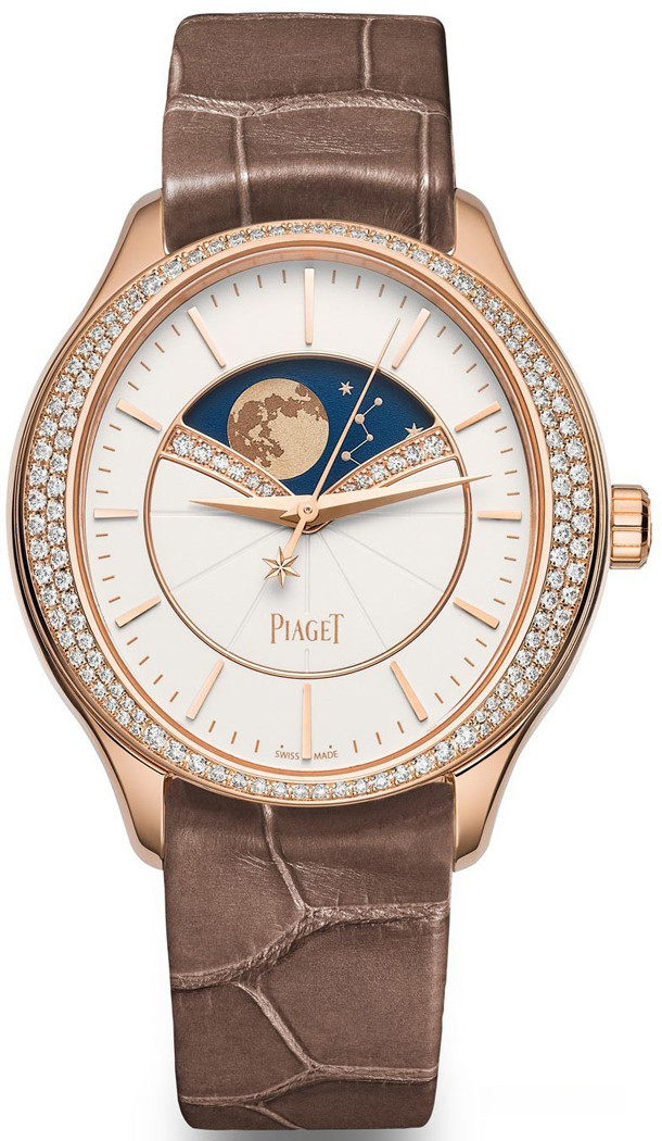 Часовая компания Piaget представила новейшую часовую линию, посвященную женщинам. Часы с усложненными часовыми функциями полностью разработаны и созданы La Côte-aux-Fées и Geneva. Новинки открывают новую главу в истории Piaget, проявляя искреннюю любовь к прекрасному полу. Транслируя идеальное часовое мастерство, выбрав для этого калибр с захватывающим традиционным часовым усложнением: индикатором Фазы Луны. Привлекает внимание корпус выполненный из розового золота 18к диаметром 36 мм. Часы Limelight Stella наделены астрономической функцией с воспроизведением лунного цикла. 135-зубчатое колесо отвечает за появление разных фаз Луны в окружении звезд. В это же время стандартная фаза Луны отстает на один день за каждые 2,5 года. Такая система гарантирует, что часы Limelight Stella требуют подзавода, только после 122 лет.