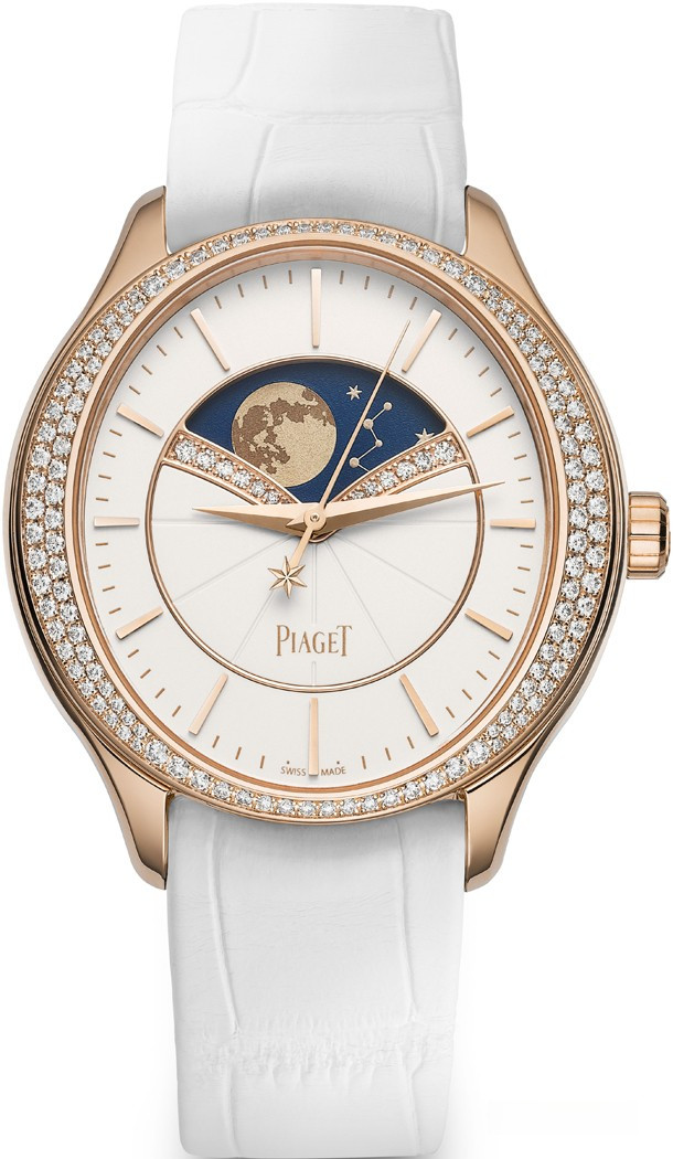 Часовая компания Piaget представила новейшую часовую линию, посвященную женщинам. Часы с усложненными часовыми функциями полностью разработаны и созданы La Côte-aux-Fées и Geneva. Новинки открывают новую главу в истории Piaget, проявляя искреннюю любовь к прекрасному полу. Транслируя идеальное часовое мастерство, выбрав для этого калибр с захватывающим традиционным часовым усложнением: индикатором Фазы Луны. Привлекает внимание корпус выполненный из розового золота 18к диаметром 36 мм. Часы Limelight Stella наделены астрономической функцией с воспроизведением лунного цикла. 135-зубчатое колесо отвечает за появление разных фаз Луны в окружении звезд. В это же время стандартная фаза Луны отстает на один день за каждые 2,5 года. Такая система гарантирует, что часы Limelight Stella требуют подзавода, только после 122 лет.