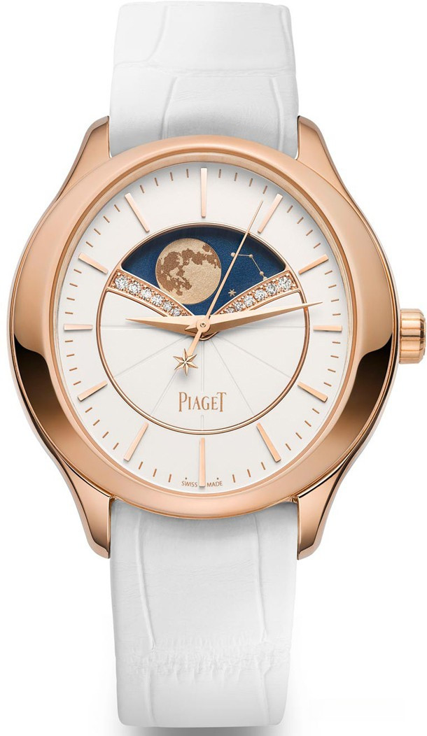 Часовая компания Piaget представила новейшую часовую линию, посвященную женщинам. Часы с усложненными часовыми функциями полностью разработаны и созданы La Côte-aux-Fées и Geneva. Новинки открывают новую главу в истории Piaget, проявляя искреннюю любовь к прекрасному полу. Транслируя идеальное часовое мастерство, выбрав для этого калибр с захватывающим традиционным часовым усложнением: индикатором Фазы Луны. Привлекает внимание корпус выполненный из розового золота 18к диаметром 36 мм. Часы Limelight Stella наделены астрономической функцией с воспроизведением лунного цикла. 135-зубчатое колесо отвечает за появление разных фаз Луны в окружении звезд. В это же время стандартная фаза Луны отстает на один день за каждые 2,5 года. Такая система гарантирует, что часы Limelight Stella требуют подзавода, только после 122 лет.