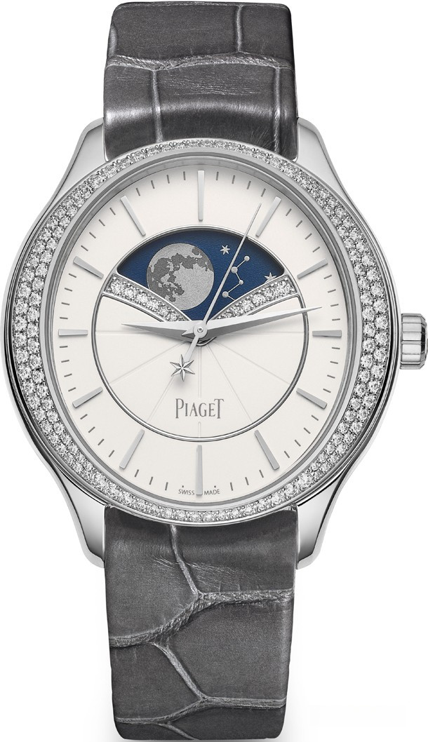 Часовая компания Piaget представила новейшую часовую линию, посвященную женщинам. Часы с усложненными часовыми функциями полностью разработаны и созданы La Côte-aux-Fées и Geneva. Новинки открывают новую главу в истории Piaget, проявляя искреннюю любовь к прекрасному полу. Транслируя идеальное часовое мастерство, выбрав для этого калибр с захватывающим традиционным часовым усложнением: индикатором Фазы Луны. Привлекает внимание корпус выполненный из белого золота 18к диаметром 36 мм. Часы Limelight Stella наделены астрономической функцией с воспроизведением лунного цикла. 135-зубчатое колесо отвечает за появление разных фаз Луны в окружении звезд. В это же время стандартная фаза Луны отстает на один день за каждые 2,5 года. Такая система гарантирует, что часы Limelight Stella требуют подзавода, только после 122 лет.