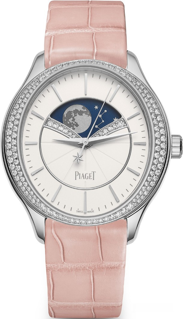 Часовая компания Piaget представила новейшую часовую линию, посвященную женщинам. Часы с усложненными часовыми функциями полностью разработаны и созданы La Côte-aux-Fées и Geneva. Новинки открывают новую главу в истории Piaget, проявляя искреннюю любовь к прекрасному полу. Транслируя идеальное часовое мастерство, выбрав для этого калибр с захватывающим традиционным часовым усложнением: индикатором Фазы Луны. Привлекает внимание корпус выполненный из белого золота 18к диаметром 36 мм. Часы Limelight Stella наделены астрономической функцией с воспроизведением лунного цикла. 135-зубчатое колесо отвечает за появление разных фаз Луны в окружении звезд. В это же время стандартная фаза Луны отстает на один день за каждые 2,5 года. Такая система гарантирует, что часы Limelight Stella требуют подзавода, только после 122 лет.