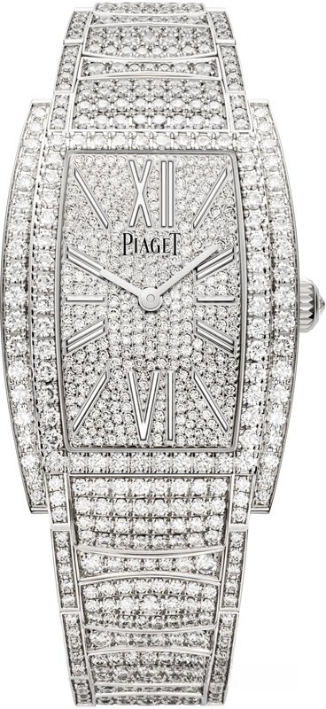 Часы Piaget Limelight Tonneau-Shaped представлены в корпусе из белого золота 18к размером 27 х 38 мм водонепроницаемостью 30 метров. Внутри корпуса находится кварцевый механизм, Калибр Piaget 690P. На циферблате с белыми багетными бриллиантами отображаются часы, минуты. Часы поставляются на браслете из белого золота 18к, инкрустированном белыми бриллиантами. Корпус инкрустирован белыми багетными бриллиантами.