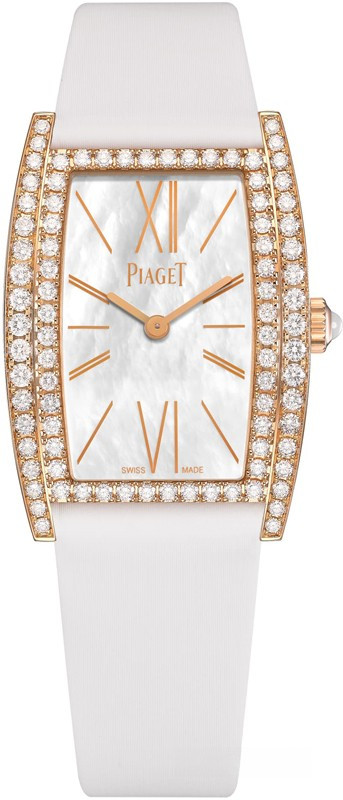 Часы Piaget Limelight Tonneau-Shaped представлены в корпусе из розового золота 18к размером 27 х 38 мм водонепроницаемостью 30 метров. Внутри корпуса находится кварцевый механизм, Калибр Piaget 690P. На белом жемчужном циферблате отображаются часы, минуты. Часы поставляются на сатиновом ремешке с вставкой из розового золота 18к. Корпус инкрустирован белыми багетными бриллиантами.