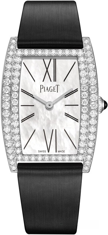 Часы Piaget Limelight Tonneau-Shaped представлены в корпусе из белого золота 18к размером 27 х 38 мм водонепроницаемостью 30 метров. Внутри корпуса находится кварцевый механизм, Калибр Piaget 690P. На белом жемчужном циферблате отображаются часы, минуты. Часы поставляются на сатиновом ремешке с вставкой из белого золота 18к. Корпус инкрустирован белыми багетными бриллиантами.