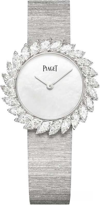 Часы Piaget Limelight 31 mm представлены в корпусе из белого золота 18к размером 31 х 7.8 мм водонепроницаемостью 30 метров. Внутри корпуса находится механизм с ручным заводом, Калибр Piaget 430P, обладающий запасом хода 43 часа. На белом жемчужном циферблате отображаются часы, минуты. Часы поставляются на браслете из белого золота 18к. Корпус инкрустирован белыми бриллиантами.
