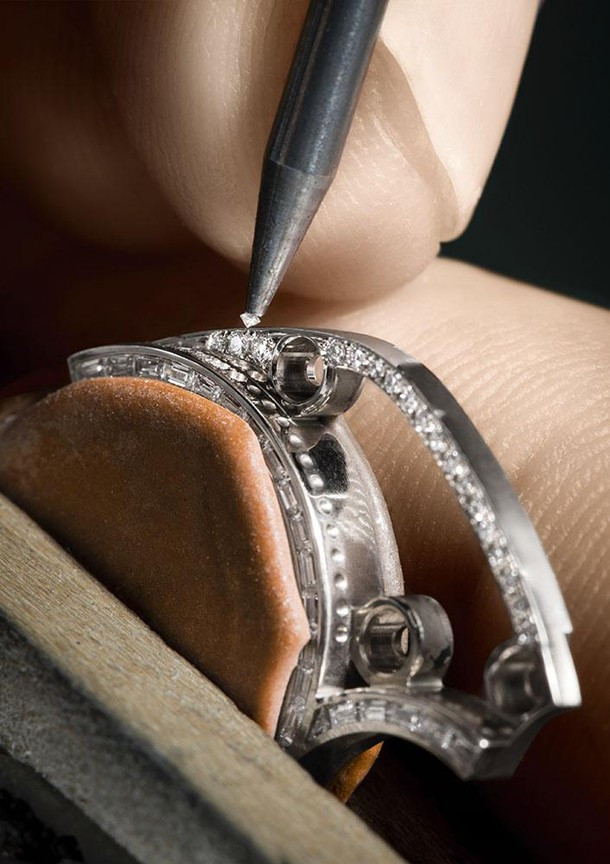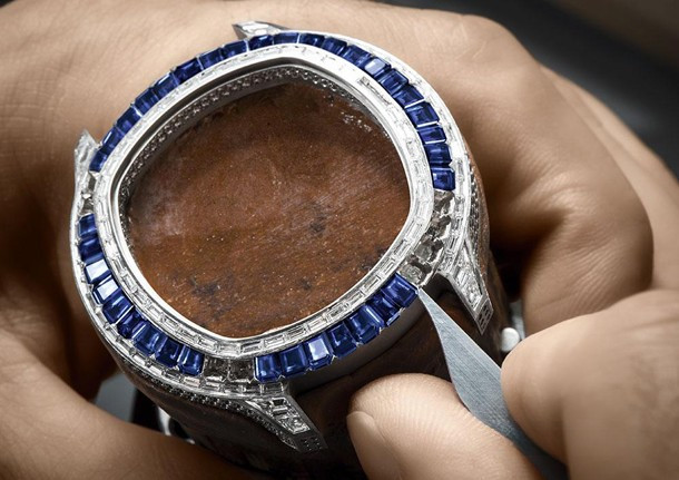 водонепроницаемость 30 м, корпус инкрустирован белыми багетными бриллиантами и сапфирами, серия ограничена (1 шт.)