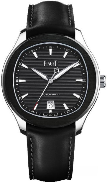 Мужские часы с автоподзаводом, из стали. Безель с черным ADLC-покрытием. Черный циферблат с гильошированным узором. Черный ремешок из каучука. Часы из стали с автоподзаводом, отличающиеся непринужденной элегантностью и современным дизайном, станут прекрасным аксессуаром для любого случая. Корпус диаметром 42 мм в форме «подушка» сохранил узнаваемые черты Piaget и прекрасно сочетается с безелем с черным ADLC-покрытием. Водонепроницаемость часов до 100 метров. Черный циферблат с горизонтальным гильошированным узором дополнен люминесцентными накладными часовыми индексами, стрелками в стиле «дофин» и секундной стрелкой хронографа с наконечником красного цвета. Часы, минуты и секунды отображаются в центре, указатель даты находится в положении «6 часов». Через сапфировое стекло задней крышки корпуса открывается вид на мануфактурный механизм Piaget 1110P с автоподзаводом, а также на ротор антрацитового цвета, украшенный гербом Piaget. Роскошные мужские часы, выпущенные ограниченной серией из 888 экземпляров, предлагаются с черным ремешком из каучука с прошивкой антрацитового цвета и классической застежкой. К модели прилагается второй сменный ремешок из телячьей кожи черного цвета.