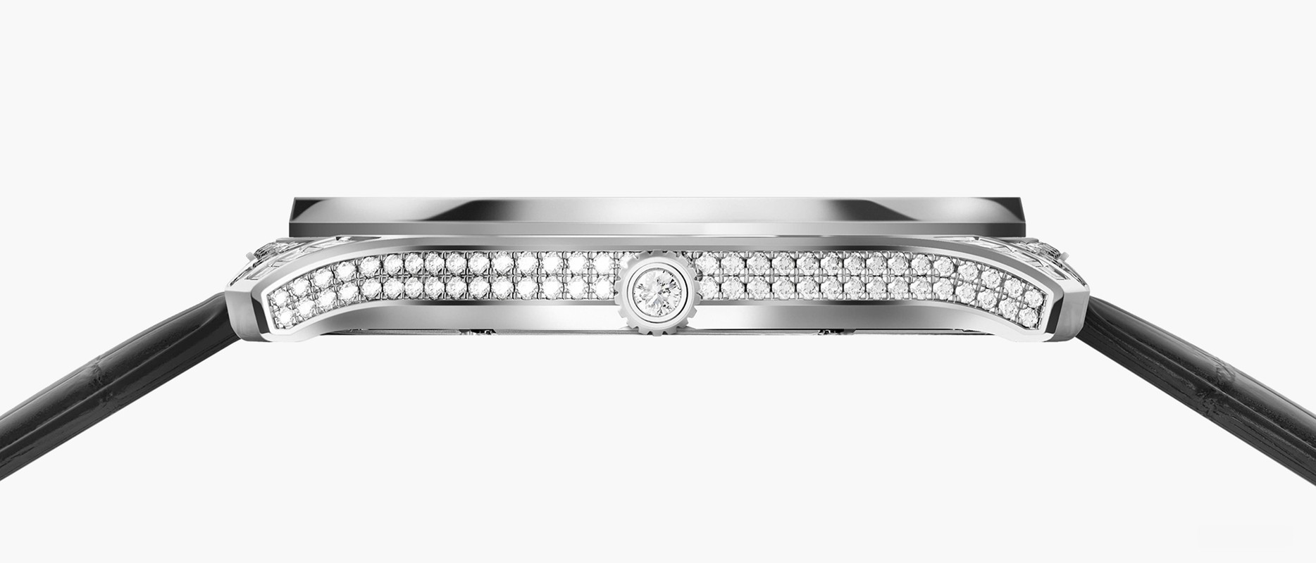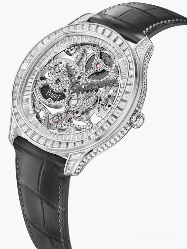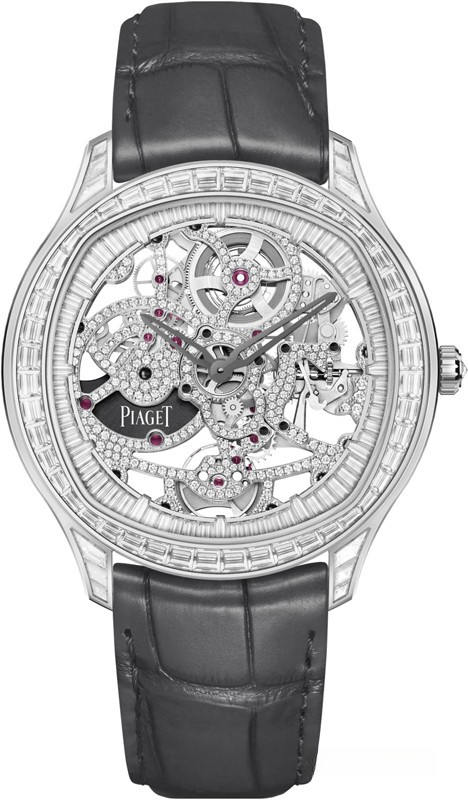Часы Piaget Polo Skeleton представлены в корпусе из белого золота 18к размером 42 х 6.5 мм и водонепроницаемостью до 30 метров. Внутри корпуса установлен автоматический механизм, Калибр 1200S с запасом хода 44 часа. На циферблате с белыми бриллиантами отображаются часы, минуты. Часы комплектуются ремешком из кожи аллигатора с вставкой из белого золота 18к. Корпус инкрустирован белыми бриллиантами.