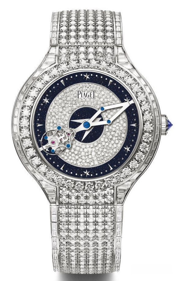 Часы Piaget Polo Tourbillon Relatif представлены в корпусе из белого золота 18к размером 47 мм, водонепроницаемостью 30 метров. Внутри корпуса установлен механизм с ручным заводом, Калибр Piaget 608P, обладающий запасом хода 80 часов. На синем авантюриновом циферблате с белыми бриллиантами отображаются часы, минуты, секунды. Часы комплектуются браслетом из белого золота 18к, инкрустированном белыми бриллиантами. Корпус инкрустирован белыми бриллиантами. Серия ограничена - 1 шт.