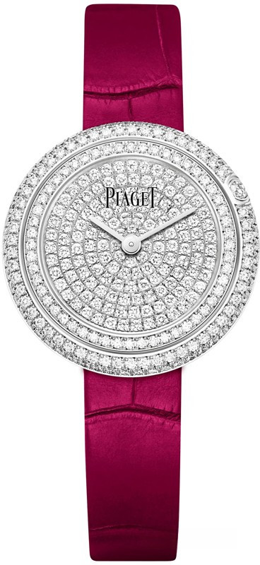 Часы Piaget Possession представлены в корпусе из белого золота 18к размером 29 мм и водонепроницаемостью 30 м. Внутри корпуса установлен кварцевый механизм, Калибр Piaget 56P. На циферблате с белыми бриллиантами отображаются часы, минуты. Часы комплектуются ремешком из кожи аллигатора с вставкой из белого золота 18к. Безель из белых бриллиантов.