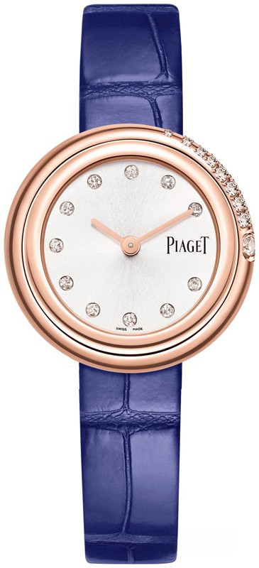 Часы Piaget Possession представлены в корпусе из розового золота 18к размером 29 мм и водонепроницаемостью 30 м. Внутри корпуса установлен кварцевый механизм, Калибр Piaget 56P. На серебристом циферблате с 11-ю белыми бриллиантами отображаются часы, минуты. Часы комплектуются ремешком из кожи аллигатора с вставкой из розового золота 18к. Безель из белых бриллиантов.
