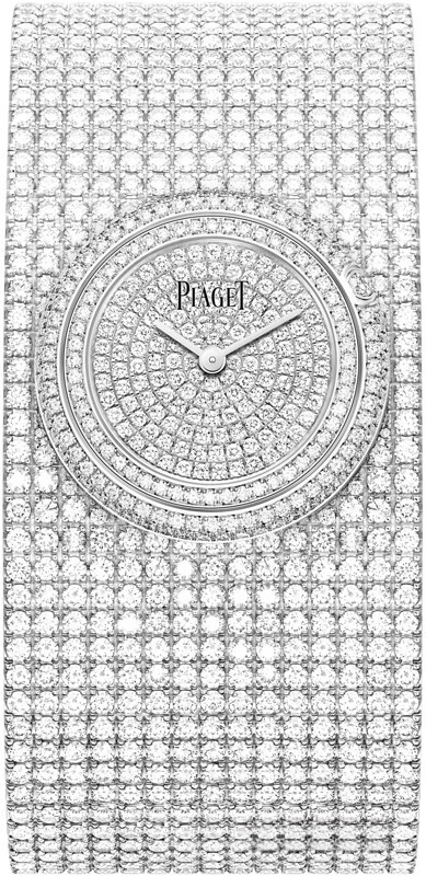 Часы Piaget Possession представлены в корпусе из белого золота 18к размером 29 мм и водонепроницаемостью 30 м. Внутри корпуса установлен кварцевый механизм, Калибр Piaget 56P. На циферблате с белыми бриллиантами отображаются часы, минуты. Часы комплектуются браслетом из белого золота 18к, инкрустированном белыми бриллиантами. Безель из белых бриллиантов.
