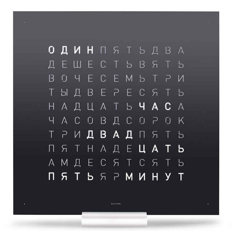 Часы Qlocktwo Classic, размером 45 x 45 см и весом 4,8 кг заставляют остановиться и взглянуть на время по-другому. Слова меняются с шагом в пять минут, с четырьмя маленькими подсвеченными угловыми точками, отображающими минуты между ними. Передняя крышка доступна в различных цветах, языках и материалах и удерживается на магнитах, что позволяет легко заменить ее в любое время. Каждая модель представлена на более чем 20 языках, включая русский. Датчики автоматически регулируют освещение в соответствии с условиями окружающего освещения, поэтому часы можно легко читать даже ночью. Также есть возможность ручной регулировки яркости. Эта модель элегантно парит в воздухе при настенном монтаже или может быть установлена отдельно на прилагаемой подставке из акрилового стекла.