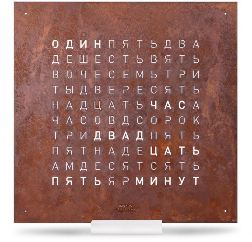 Часы Qlocktwo Classic, размером 45 x 45 см и весом 4,8 кг заставляют остановиться и взглянуть на время по-другому. Слова меняются с шагом в пять минут, с четырьмя маленькими подсвеченными угловыми точками, отображающими минуты между ними. Передняя крышка доступна в различных цветах, языках и материалах и удерживается на магнитах, что позволяет легко заменить ее в любое время. Каждая модель представлена на более чем 20 языках, включая русский. Датчики автоматически регулируют освещение в соответствии с условиями окружающего освещения, поэтому часы можно легко читать даже ночью. Также есть возможность ручной регулировки яркости. Эта модель элегантно парит в воздухе при настенном монтаже или может быть установлена отдельно на прилагаемой подставке из акрилового стекла.