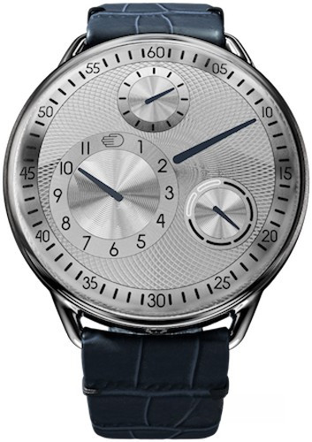 Часы Ressence Type 1 представлены в титановом корпусе размером 42 х 13 мм и водонепроницаемостью 10 метров. Внутри корпуса установлен автоматический механизм, Калибр 2824/2 с запасом хода 36 часов. На серебристом гильошированном циферблате отображаются часы, минуты, секунды, день недели. Часы комплектуются ремешком из кожи аллигатора с титановой вставкой.
