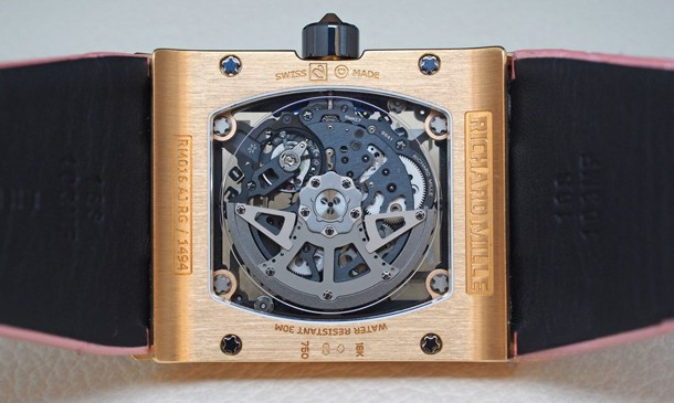 Часовой бренд Richard Mille представил изысканные женские наручные часы. RM 016 Automatic Extra Flat Diamond Set представляют собой замечательное техническое и художественное творение. Сохраняя отличительные признаки Richard Mille, прямоугольный корпус часов является одним из самых тонких, созданных брендом, и содержит в себе усовершенствованный Калибр RMAS7, автоматический механизм с 55-часовым запасом хода, который оснащен системой переменной геометрии для оптимизации подзавода механизма. Корпус обладает водонепроницаемостью до 30 метров. В часах Richard Mille RM 016 Automatic Extra Flat Diamond Set технические элементы механизма гармонируют с бриллиантами, украшающими корпус из розового золота 18к.