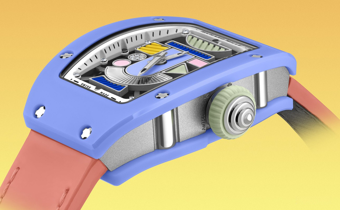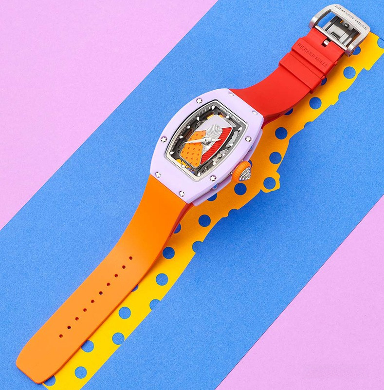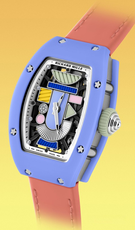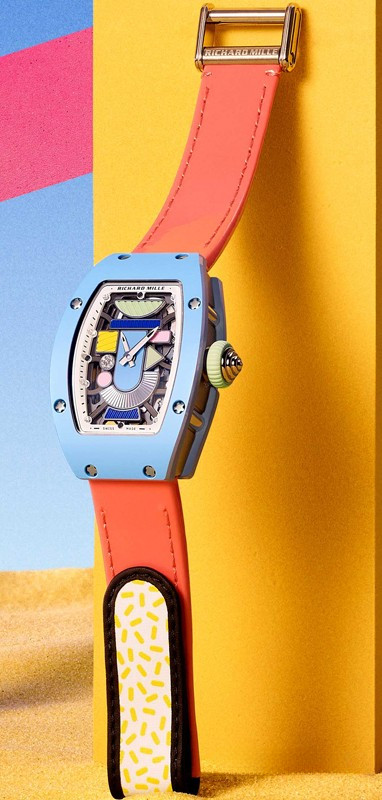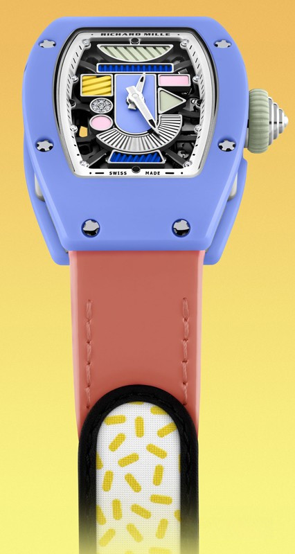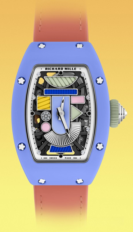 Часы Richard Mille RM 07-01 представлены в корпусе размером 45.23 x 31.4 x 11.85 мм из керамики и белого золота 18к водонепроницаемостью 50 метров. Внутри корпуса установлен автоматический механизм, Калибр CRMA2, обладающий запасом хода 50 часов. На черном циферблате с белыми бриллиантами отображаются часы и минуты. Часы поставляются на каучуковом ремешке с золотой застежкой. Серия ограничена - 50 шт.