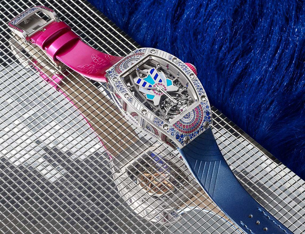 водонепроницаемость 30 м, корпус инкрустирован сапфирами, рубинами, бриллиантами, лазуритом, белым перламутром, бирюзой, серия ограничена (7 шт.)