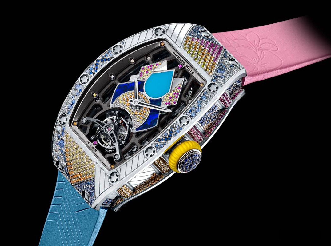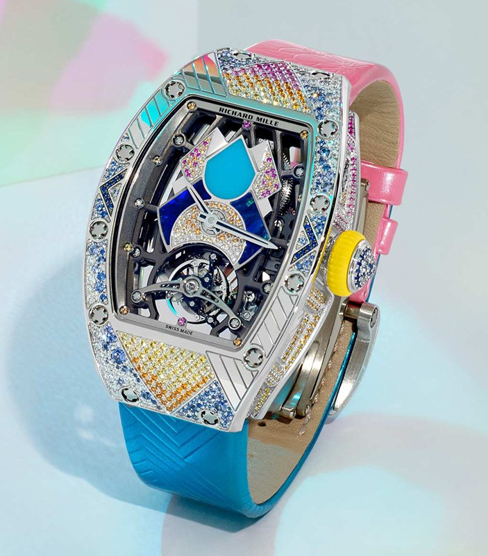 водонепроницаемость 30 м, корпус инкрустирован сапфирами, бриллиантами, аметистами, цавориты, рубины, хризопразом, опалом, серия ограничена (7 шт.)