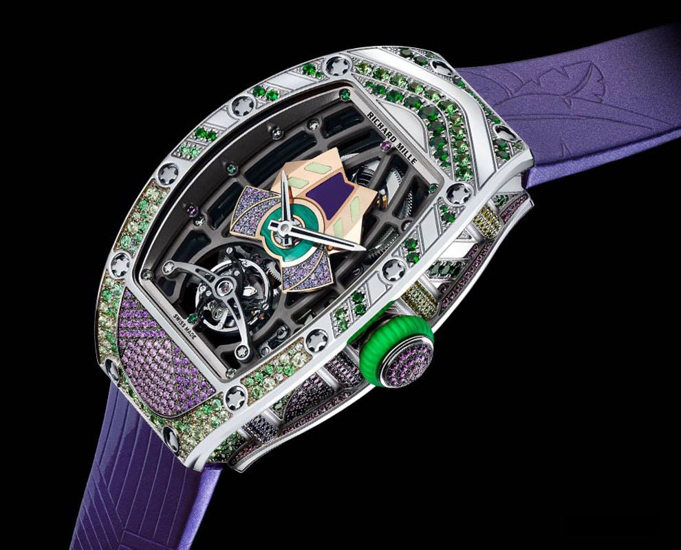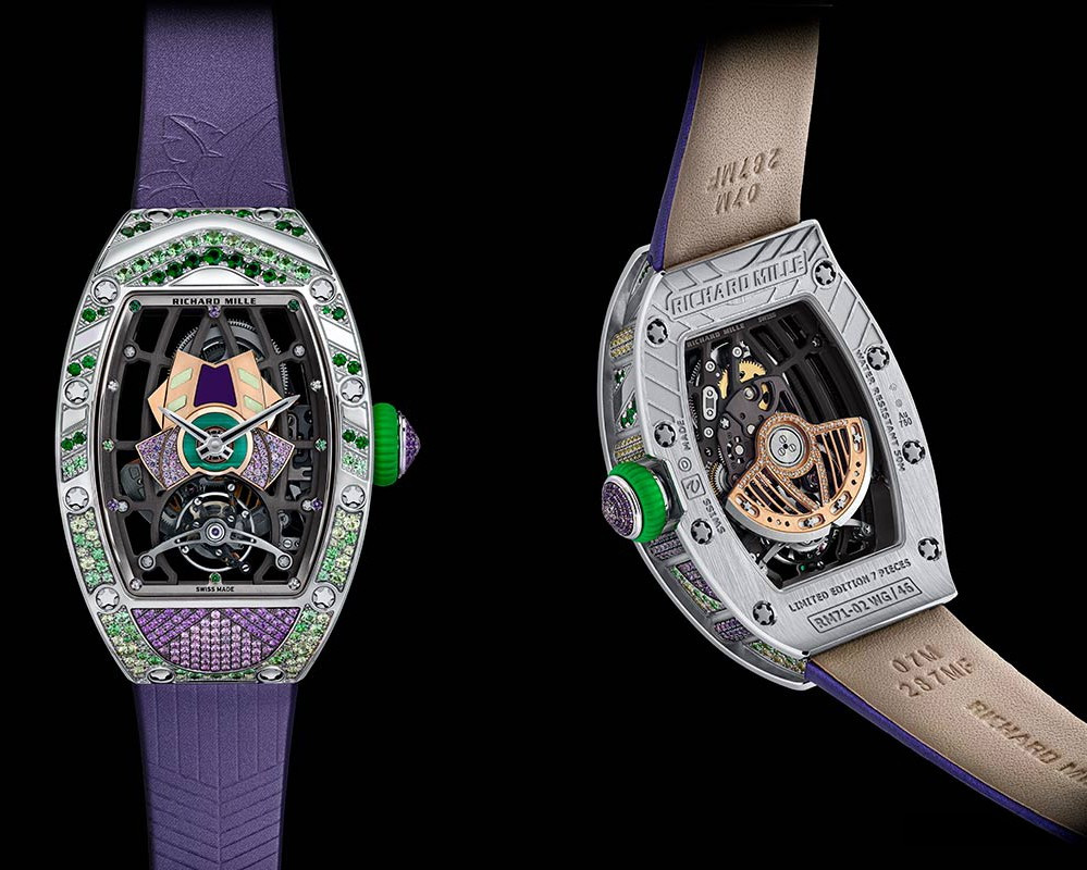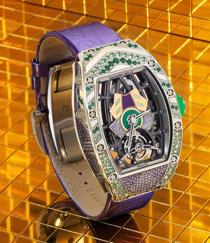 водонепроницаемость 30 м, корпус инкрустирован сапфирами, бриллиантами, цаворитами, перидотами, аметистами, сугилитами, хризоломоном, малахитом, серия ограничена (7 шт.)