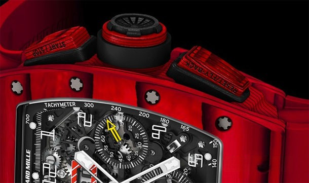 Часы Richard Mille RM 011 Red TPT Quartz Automatic Flyback Chronograph являются истинной моделью высокого часового искусства, с настощим механическим Калибром, но в корпусе из углеродного волокна и слоями красного кварца. Технология TPT Quartz – сочетание материалов в создании корпуса с удивительным черно-белым градиентом и несколькими слоями. И теперь Richard Mille в состоянии применить цветные смолы, чтобы придать часам еще более смелый дизайн. Этот уникальный черный и красный вид – результат наложения слоев (более 600 слоев в общей сложности), с чередованием кварцевых и углеродных волокон. Инженеры Richard Mille разработали весьма оригинальный материал, известный как TPT кварц, состоящий из сотен слоев кварцевых волокон, наложенных друг на друга. Слои кварца вставлены между слоями NTPT-углерода таким образом, чтобы с каждым слоем менять расположение волокон на 45 градусов. Последующая обработка выявляет случайно размещенные слоя, создавая уникальный внешний вид для любой модели. После первого использования в часах RM 27-02 Tourbillon, Richard Mille теперь добавили в ТРТ Quartz смолы интенсивного красного цвета, продемонстрировав двухцветный корпус, где черные волокна углерода чередуются с ярко-красными. Касательно всего остального, модель Richard Mille RM 011 Red TPT Quartz по-прежнему остается стандартной RM 011, что означает наличие автоматического хронографа с функцией обратного отсчета, крупного индикатора даты (работающего при помощи двух отдельных дисков), индикатора месяцев в позиции 4-х часов, запаса хода – полноценные 55 часов, предоставляемых системой с двойным барабаном, работающей посредством ротора переменной геометрии, палет и мостов, выполненных из титана класса 5 (видимых со стороны скелетонизированного циферблата). Корпус остался верен традициям Richard Mille: бочкообразной формы с 12 винтами. Как завершающий штрих, красную модель RM 011 дополняет красный каучуковый ремешок. Тираж модели Richard Mille RM 011 Red TPT Quartz составит 50 единиц.