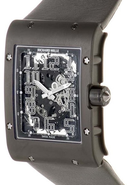Часы представлены в корпусе из титалита размером 49.8 x 38 х 8.25 мм и водонепроницаемостью 30 метров. Внутри корпуса установлен автоматический механизм Калибр RM 005-S с запасом хода 55 часов. На черном скелетированном циферблате отображаются часы, минуты, дата. Часы комплектуются черным кожаным ремешком с вставкой из титана.