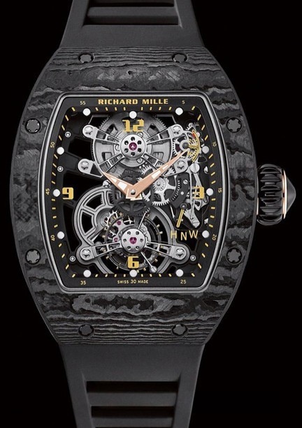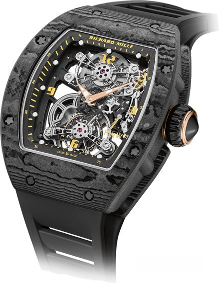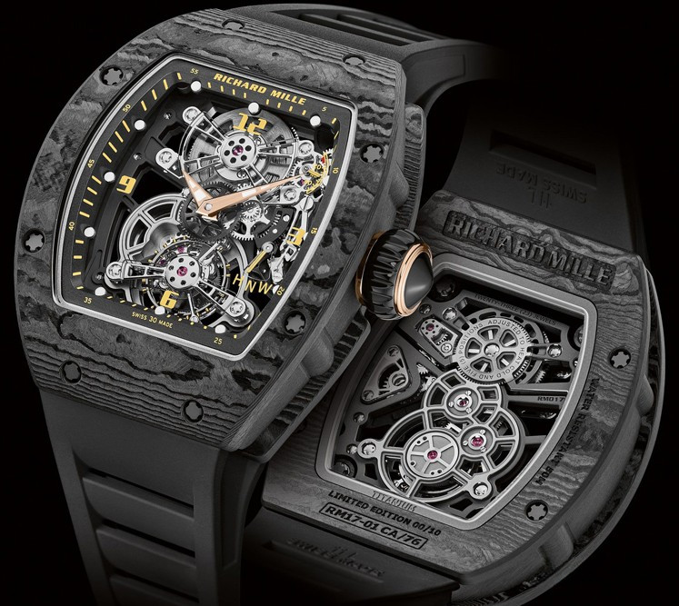 Часы Richard Mille RM 17-01 представлены в корпусе из карбона ТРТ размером 48.15 x 40.1 x 13.8 мм водонепроницаемостью 50 м. Внутри корпуса установлен механизм с ручным заводом, Калибр RM17-01, обладающий запасом хода 70 часов. На черном скелетированном циферблате отображаются часы, минуты, запас хода, индикатор функций. Часы поставляются на каучуковом ремешке с титановой вставкой. Серия ограничена - 10 шт.