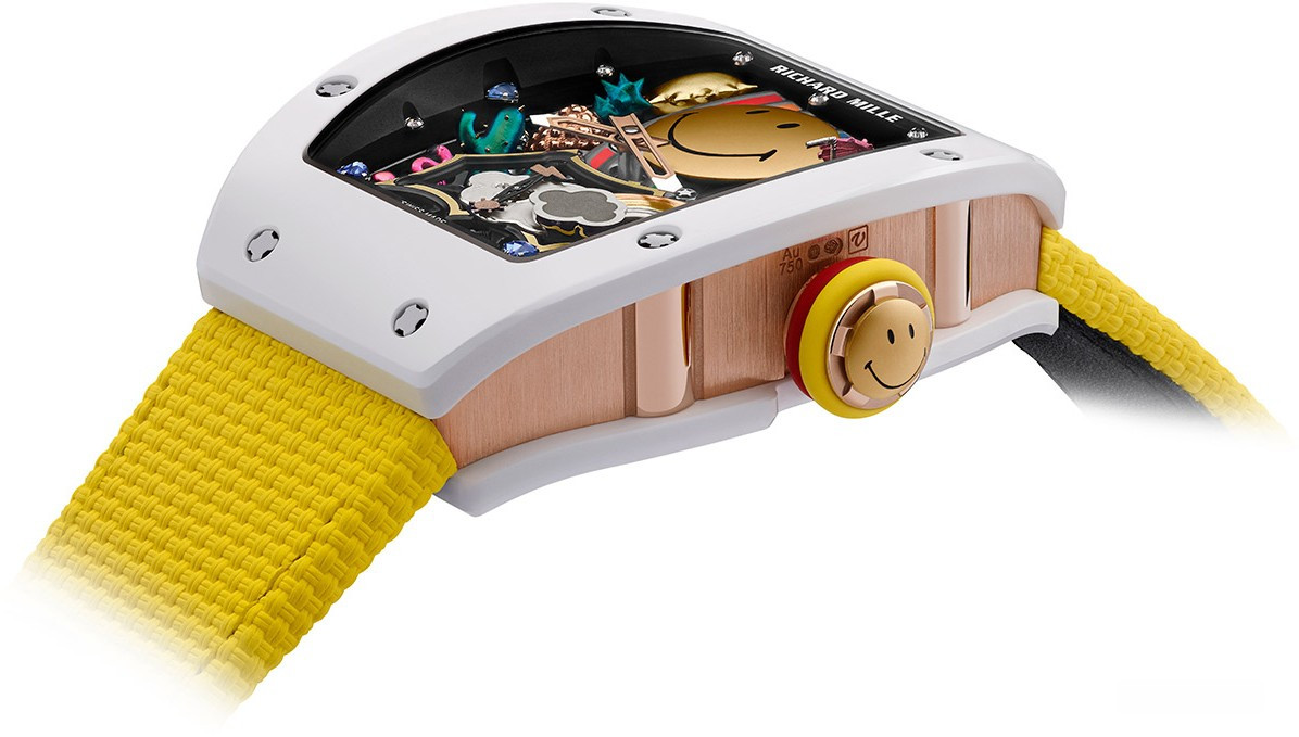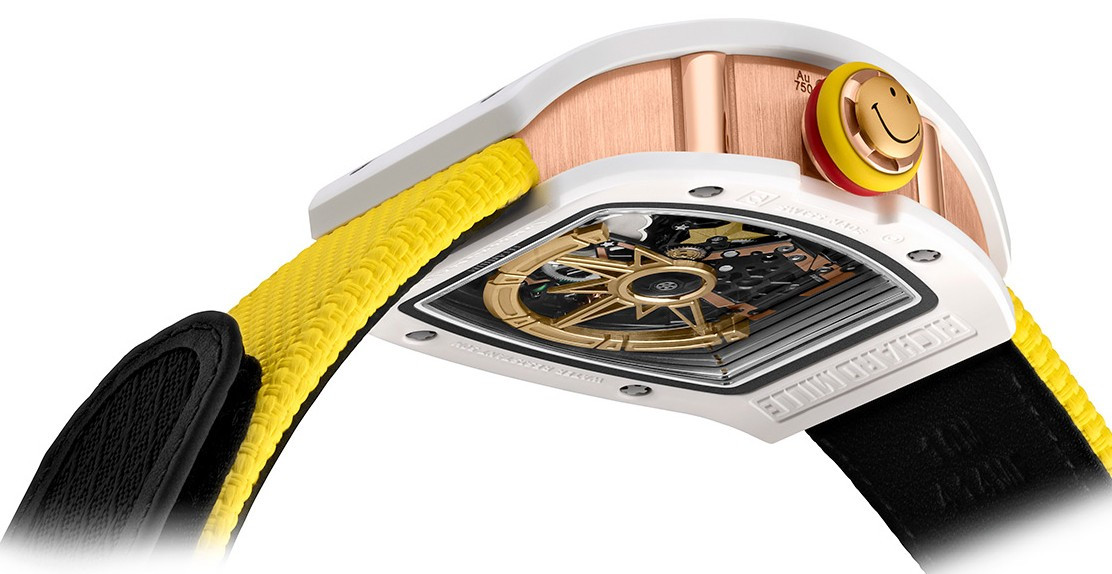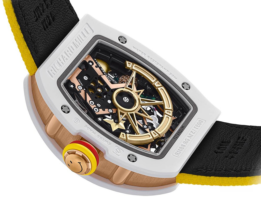Часы Richard Mille RM 88 представлены в корпусе размером 48.15 x 39.74 x 13.3 мм из керамики и розового золота 18к водонепроницаемостью 50 метров. Внутри корпуса установлен автоматический механизм, Калибр CRMT7, обладающий запасом хода 50 часов. На золотистом циферблате отображаются часы, минуты, индикато функций.Часы поставляются на кожано ремешке с золотой застежкой. Серия ограничена - 50 шт.
