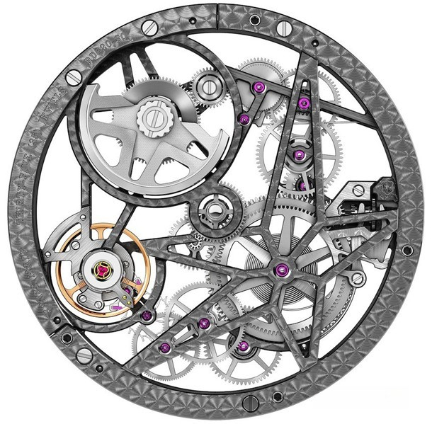 Roger Dubuis Excalibur Automatic Skeleton выпущены в корпусе из розового золота размером 42 мм. Roger Dubuis Excalibur Automatic Skeleton могут показаться довольно знакомыми с точки зрения внешних характеристик: для нетренированного глаза часы выглядят обманчиво похожими на мануфактурные модели с турбийоном. Несмотря на это, тот, кто более тесно знаком с мелкими деталями и механизмами часового дела заметит ключевую разницу сразу. В положении 8:00 часов турбийон и его вращающаяся клеть были заменены на балансовое колесо, обеспеченное скелетонированными мостами и платиной с зеркальной обработкой. Механизм RD820SQ состоит из 167 элементов, большинство из которых были покрыты серым родием. Часы компектуются коричневым ремешком из кожи аллигатора с застежкой из розового золота 18к.