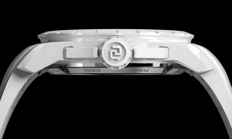 Часы Roger Dubuis Excalibur Monobalancier представлены в корпусе из керамики размером 42 мм водонепроницаемостью 100 метров. Внутри корпуса установлен автоматический механизм, Калибр RD720SQ, обладающий запасом хода 72 часа. На синем циферблате отображаются часы, минуты. Часы комплектуются кожаным ремешком с застежкой из нержавеющей стали.