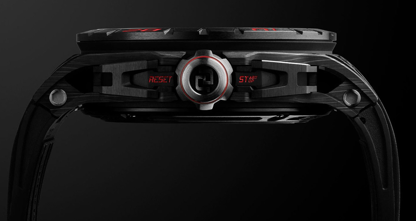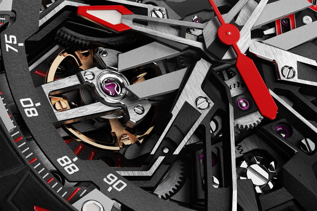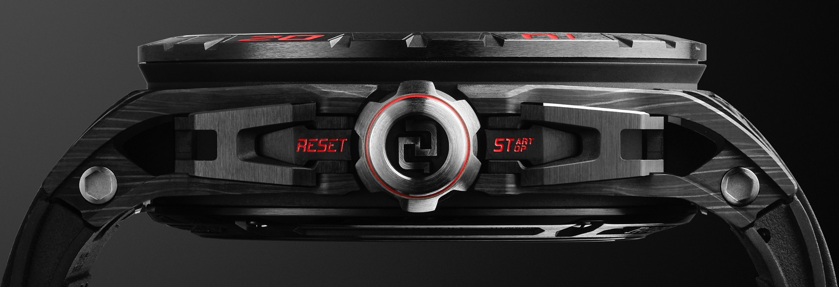 Часы Roger Dubuis Excalibur Spider Flyback Chronograph представлены в корпусе размером 45 х 16.1 мм из карбона и керамики водонепроницаемостью 100 метров. Внутри корпуса установлен автоматический механизм, Калибр RD780, обладающий запасом хода 72 часа. На черном циферблате отображаются часы, минуты, секунды, дата, накопители хронографа. Часы поставляются на каучуковом ремешке с титановой застежкой.