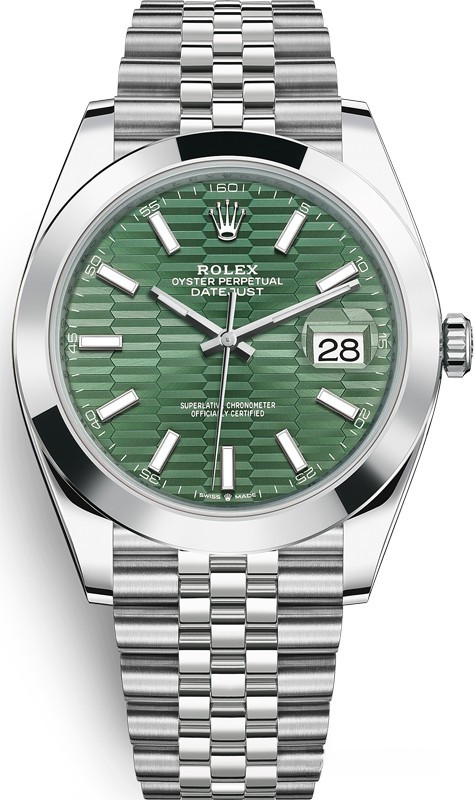 Новая модель Datejust 41 представлена в корпусе из нержавеющей стали с зеленым циферблатом. Модель Datejust – настоящий эталон классических наручных часов как в отношении дизайна, над которым время не властно, так и по своим техническим характеристикам. Для проверки показателей точности хода часов в процессе эксплуатации компания Ролекс тестирует часы в собранном виде, что позволяет гарантировать их исключительные характеристики в ходе ношения в том, что касается точности, водонепроницаемости, автоматического подзавода и запаса хода. Автоматический механизм обеспечивает 70-часовой запас хода и поддерживает функции часов, минут, секунд и даты. Часы комплектуются браслетом из нержавеющей стали.