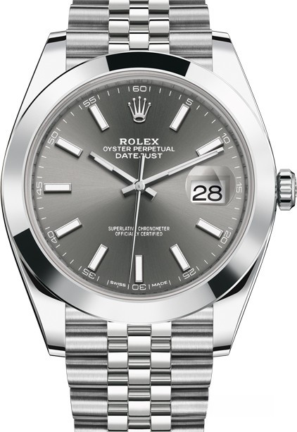 Новая модель Datejust 41 представлена в корпусе из нержавеющей стали с серым циферблатом. Модель Datejust – настоящий эталон классических наручных часов как в отношении дизайна, над которым время не властно, так и по своим техническим характеристикам. Для проверки показателей точности хода часов в процессе эксплуатации компания Ролекс тестирует часы в собранном виде, что позволяет гарантировать их исключительные характеристики в ходе ношения в том, что касается точности, водонепроницаемости, автоматического подзавода и запаса хода. Автоматический механизм обеспечивает 70-часовой запас хода и поддерживает функции часов, минут, секунд и даты. Часы комплектуются браслетом из нержавеющей стали.