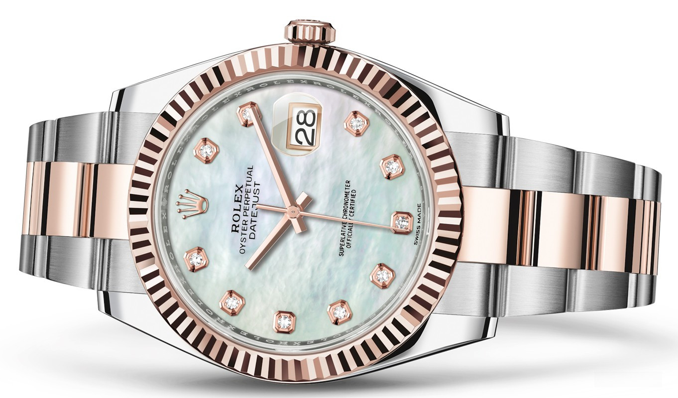 Модель Datejust 41 представлена в версии из золота Everose и нержавеющей стали с белым жемчужным циферблатом и 10-ю белыми бриллиантами. Модель Datejust – настоящий эталон классических наручных часов как в отношении дизайна, над которым время не властно, так и по своим техническим характеристикам. Для проверки показателей точности хода часов в процессе эксплуатации компания Ролекс тестирует часы в собранном виде, что позволяет гарантировать их исключительные характеристики в ходе ношения в том, что касается точности, водонепроницаемости, автоматического подзавода и запаса хода. Автоматический механизм обеспечивает 70-часовой запас хода и поддерживает функции часов, минут, секунд и даты. Часы комплектуются браслетом из нержавеющей стали и розового золота.