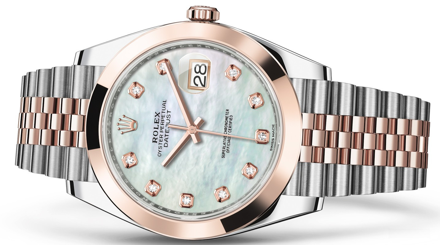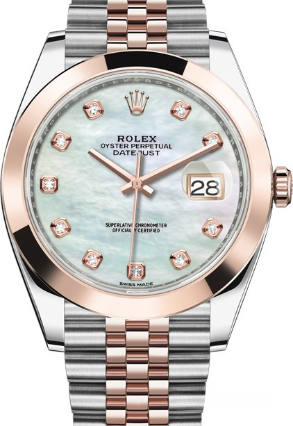 Модель Datejust 41 представлена в версии из золота Everose и нержавеющей стали с белым жемчужным циферблатом и 10-ю белыми бриллиантами. Модель Datejust – настоящий эталон классических наручных часов как в отношении дизайна, над которым время не властно, так и по своим техническим характеристикам. Для проверки показателей точности хода часов в процессе эксплуатации компания Ролекс тестирует часы в собранном виде, что позволяет гарантировать их исключительные характеристики в ходе ношения в том, что касается точности, водонепроницаемости, автоматического подзавода и запаса хода. Автоматический механизм обеспечивает 70-часовой запас хода и поддерживает функции часов, минут, секунд и даты. Часы комплектуются браслетом из нержавеющей стали и розового золота.