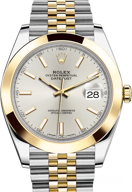 Новая модель Datejust 41 представлена в версии из желтого золота и нержавеющей стали с серебристым циферблатом. Модель Datejust – настоящий эталон классических наручных часов как в отношении дизайна, над которым время не властно, так и по своим техническим характеристикам. Для проверки показателей точности хода часов в процессе эксплуатации компания Ролекс тестирует часы в собранном виде, что позволяет гарантировать их исключительные характеристики в ходе ношения в том, что касается точности, водонепроницаемости, автоматического подзавода и запаса хода. Автоматический механизм обеспечивает 70-часовой запас хода и поддерживает функции часов, минут, секунд и даты. Часы комплектуются браслетом из нержавеющей стали и желтого золота.