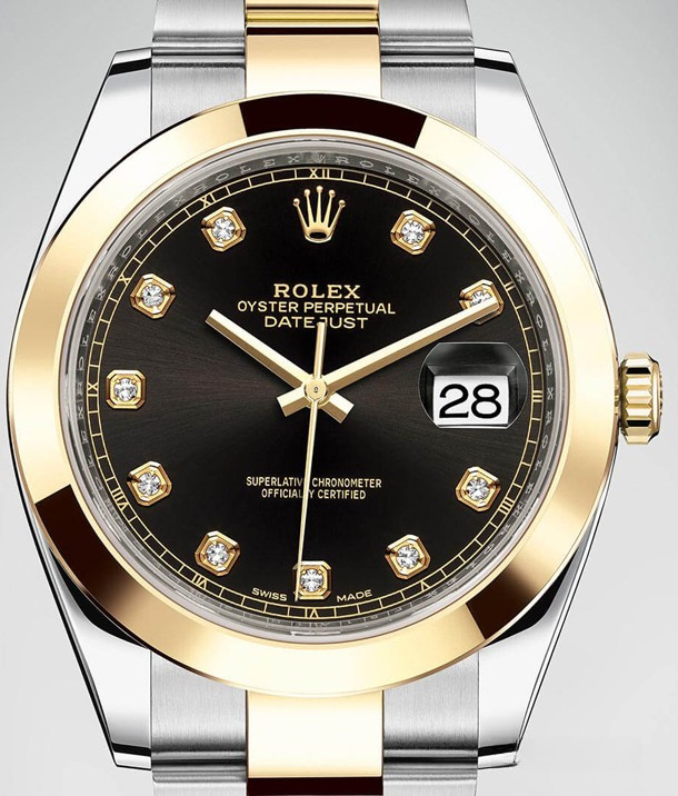 Новая модель Datejust 41 представлена в версии из желтого золота и нержавеющей стали с черным циферблатом, украшенным 10-ю белыми бриллиантами. Модель Datejust – настоящий эталон классических наручных часов как в отношении дизайна, над которым время не властно, так и по своим техническим характеристикам. Для проверки показателей точности хода часов в процессе эксплуатации компания Ролекс тестирует часы в собранном виде, что позволяет гарантировать их исключительные характеристики в ходе ношения в том, что касается точности, водонепроницаемости, автоматического подзавода и запаса хода. Автоматический механизм обеспечивает 70-часовой запас хода и поддерживает функции часов, минут, секунд и даты. Часы комплектуются браслетом из нержавеющей стали и желтого золота.