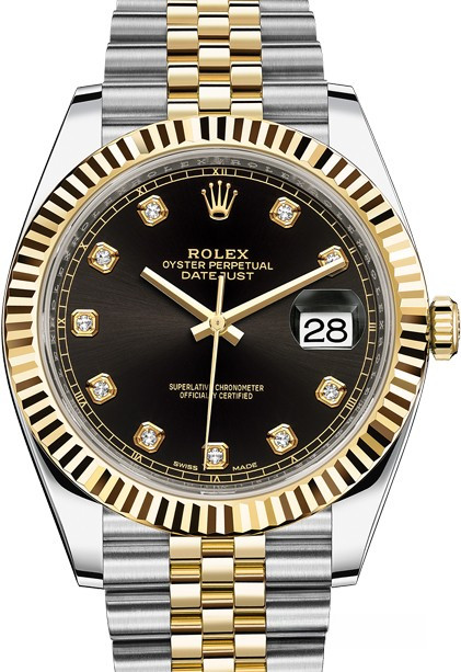 Новая модель Datejust 41 представлена в версии из желтого золота и нержавеющей стали с черным циферблатом и 10-ю белыми бриллиантами. Модель Datejust – настоящий эталон классических наручных часов как в отношении дизайна, над которым время не властно, так и по своим техническим характеристикам. Для проверки показателей точности хода часов в процессе эксплуатации компания Ролекс тестирует часы в собранном виде, что позволяет гарантировать их исключительные характеристики в ходе ношения в том, что касается точности, водонепроницаемости, автоматического подзавода и запаса хода. Автоматический механизм обеспечивает 70-часовой запас хода и поддерживает функции часов, минут, секунд и даты. Часы комплектуются браслетом из нержавеющей стали и желтого золота.