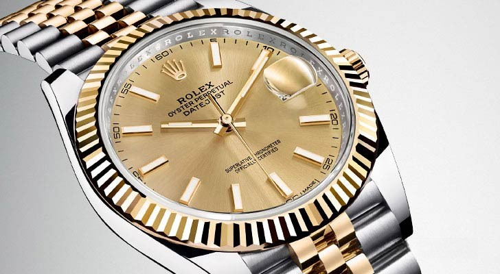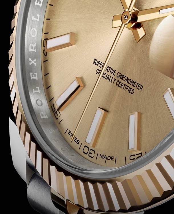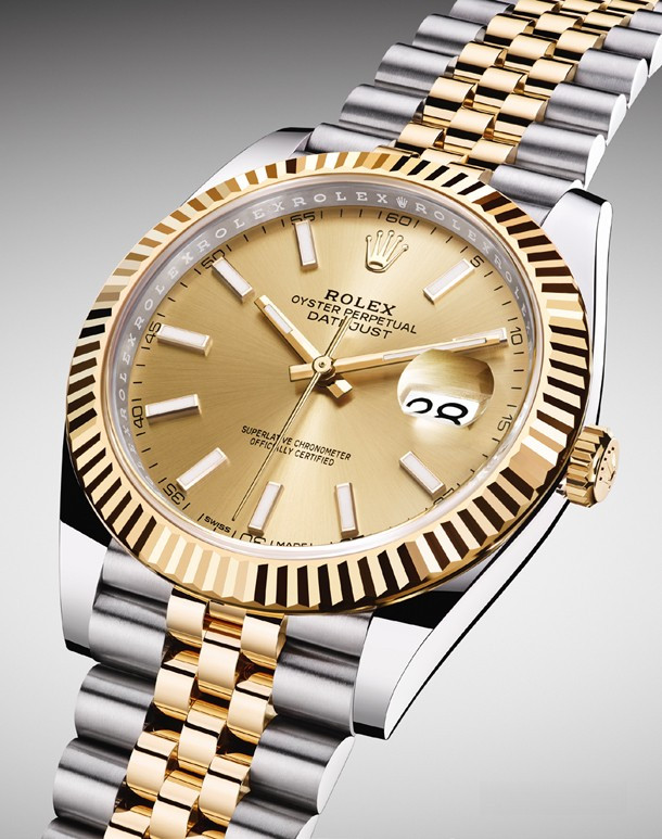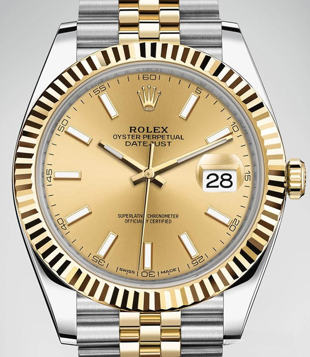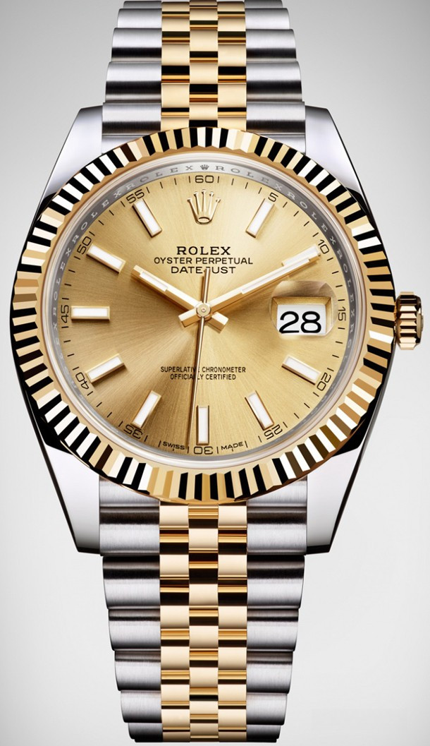 Новая модель Datejust 41 представлена в версии из желтого золота и нержавеющей стали с золотистым циферблатом. Модель Datejust – настоящий эталон классических наручных часов как в отношении дизайна, над которым время не властно, так и по своим техническим характеристикам. Для проверки показателей точности хода часов в процессе эксплуатации компания Ролекс тестирует часы в собранном виде, что позволяет гарантировать их исключительные характеристики в ходе ношения в том, что касается точности, водонепроницаемости, автоматического подзавода и запаса хода. Автоматический механизм обеспечивает 70-часовой запас хода и поддерживает функции часов, минут, секунд и даты. Часы комплектуются браслетом из нержавеющей стали и желтого золота.