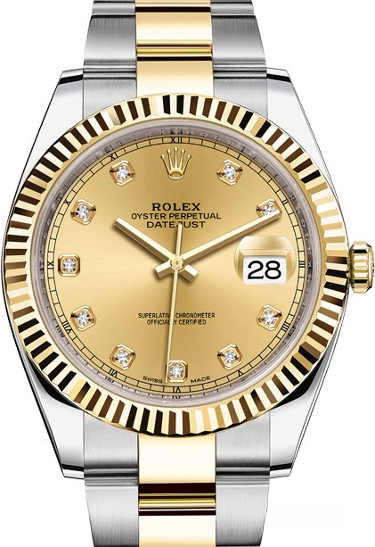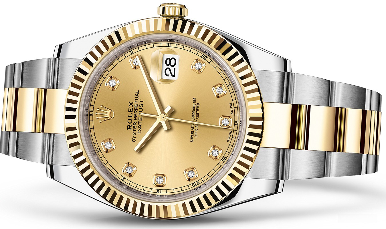 Новая модель Datejust 41 представлена в версии из желтого золота и нержавеющей стали с золотистым циферблатом и 10-ю белыми бриллиантами. Модель Datejust – настоящий эталон классических наручных часов как в отношении дизайна, над которым время не властно, так и по своим техническим характеристикам. Для проверки показателей точности хода часов в процессе эксплуатации компания Ролекс тестирует часы в собранном виде, что позволяет гарантировать их исключительные характеристики в ходе ношения в том, что касается точности, водонепроницаемости, автоматического подзавода и запаса хода. Автоматический механизм обеспечивает 70-часовой запас хода и поддерживает функции часов, минут, секунд и даты. Часы комплектуются браслетом из нержавеющей стали и желтого золота.