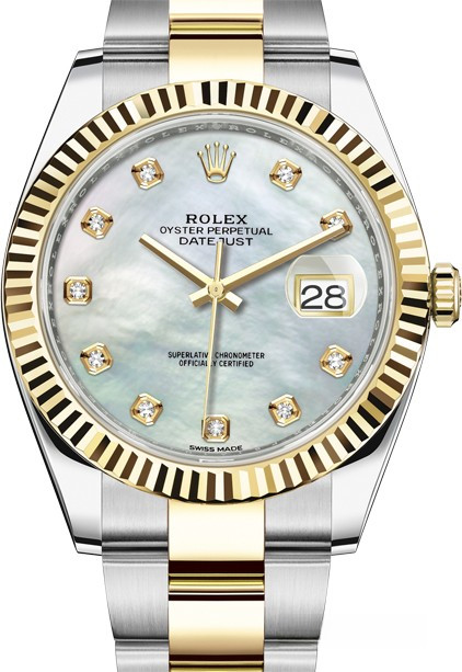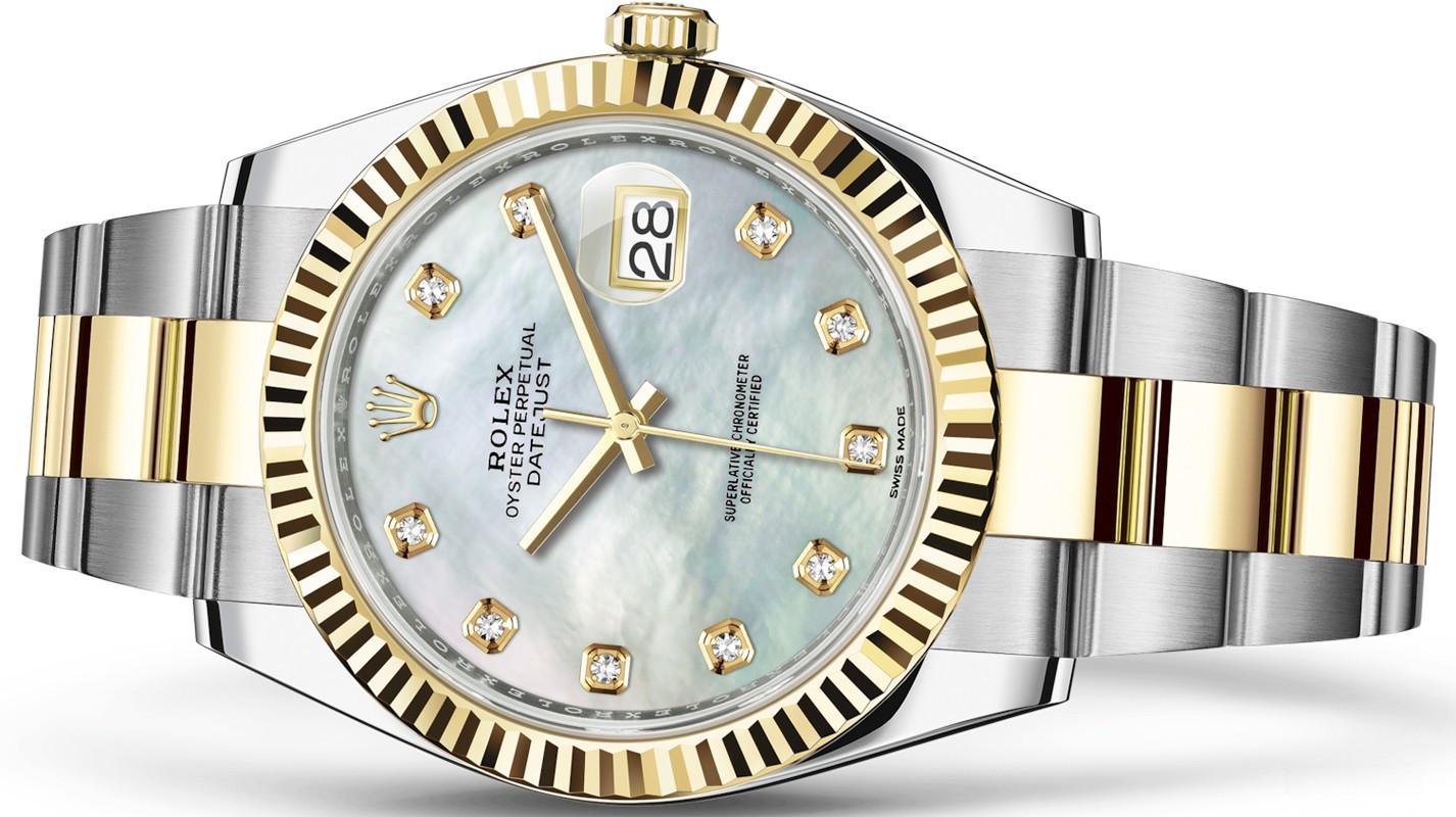 Модель Datejust 41 представлена в версии из желтого золота и нержавеющей стали с белым жемчужным циферблатом и 10-ю белыми бриллиантами. Модель Datejust – настоящий эталон классических наручных часов как в отношении дизайна, над которым время не властно, так и по своим техническим характеристикам. Для проверки показателей точности хода часов в процессе эксплуатации компания Ролекс тестирует часы в собранном виде, что позволяет гарантировать их исключительные характеристики в ходе ношения в том, что касается точности, водонепроницаемости, автоматического подзавода и запаса хода. Автоматический механизм обеспечивает 70-часовой запас хода и поддерживает функции часов, минут, секунд и даты. Часы комплектуются браслетом из нержавеющей стали и желтого золота.