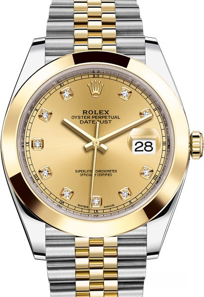 Новая модель Datejust 41 представлена в версии из желтого золота и нержавеющей стали с золотистым циферблатом и 10-ю белыми бриллиантами. Модель Datejust – настоящий эталон классических наручных часов как в отношении дизайна, над которым время не властно, так и по своим техническим характеристикам. Для проверки показателей точности хода часов в процессе эксплуатации компания Ролекс тестирует часы в собранном виде, что позволяет гарантировать их исключительные характеристики в ходе ношения в том, что касается точности, водонепроницаемости, автоматического подзавода и запаса хода. Автоматический механизм обеспечивает 70-часовой запас хода и поддерживает функции часов, минут, секунд и даты. Часы комплектуются браслетом из нержавеющей стали и желтого золота.