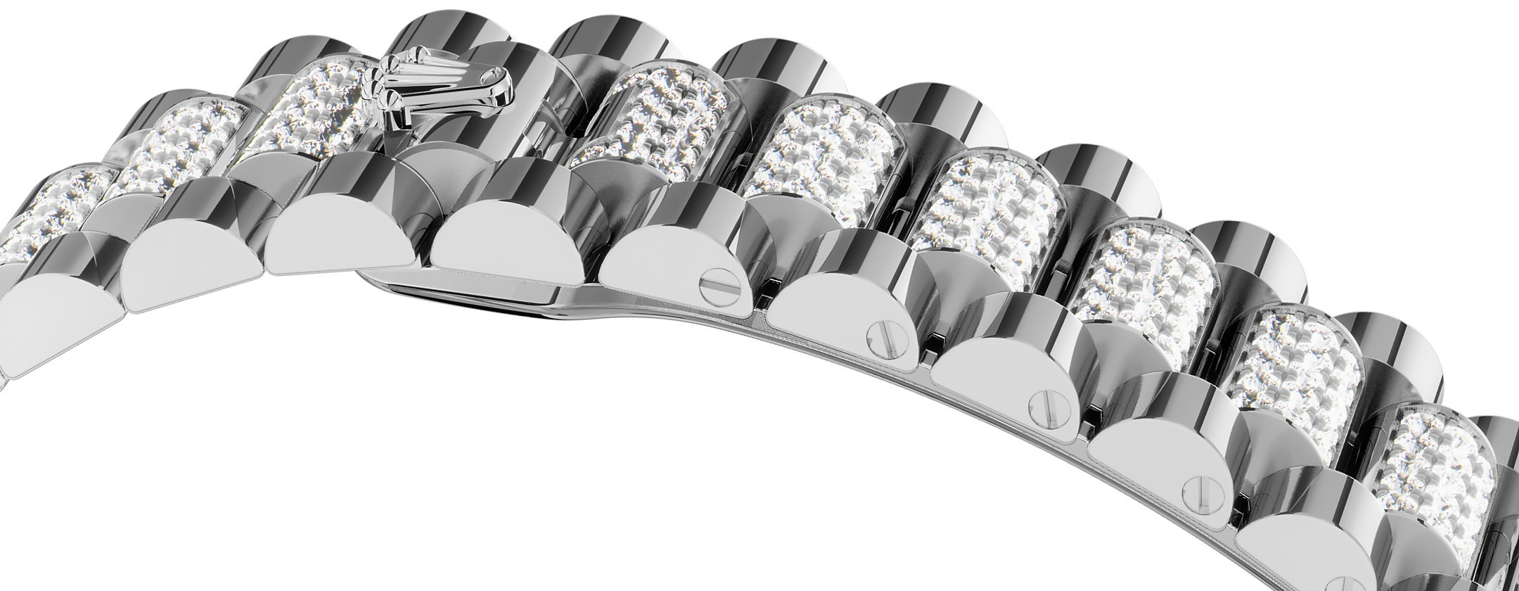 Водостойкие часы Rolex Day-Date 36mm White Gold являются официально сертифицированным хронометром COSC, выпущены в круглом корпусе из белого золота 18к. Размер составляет 36 мм, водонепроницаемость 100 м. Внутри корпуса установлен автоматический механизм, Калибр 3255, обладающий запасом хода 70 часов. На циферблате из бирюзы с белыми бриллиантами отображаются часы, минуты, секунды, дата, день недели. Часы комплектуются браслетом из белого золота 18к, инкрустированным белыми бриллиантами.