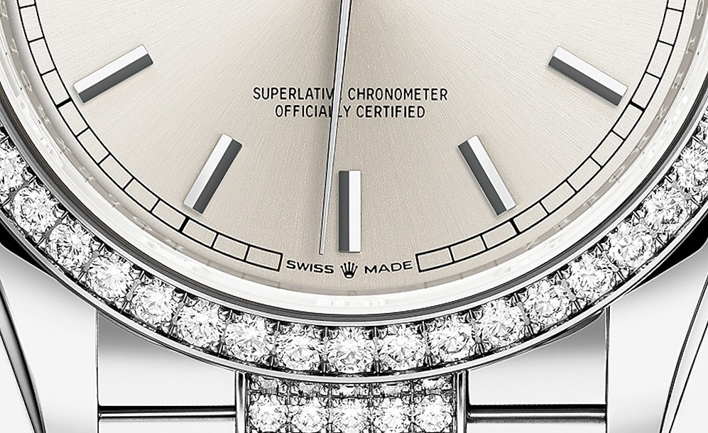 Водостойкие часы Rolex Day-Date Day-Date 36mm White Gold являются официально сертифицированным хронометром COSC, выпущены в круглом корпусе из белого золота 18к. Размер составляет 36 мм, водонепроницаемость 100 м. Внутри корпуса установлен автоматический механизм. На серебристом циферблате отображаются часы, минуты, секунды, дата, день недели. Часы комплектуются браслетом из белого золота 18к, инкрустированным белыми бриллиантами. Безель из белых бриллиантов.