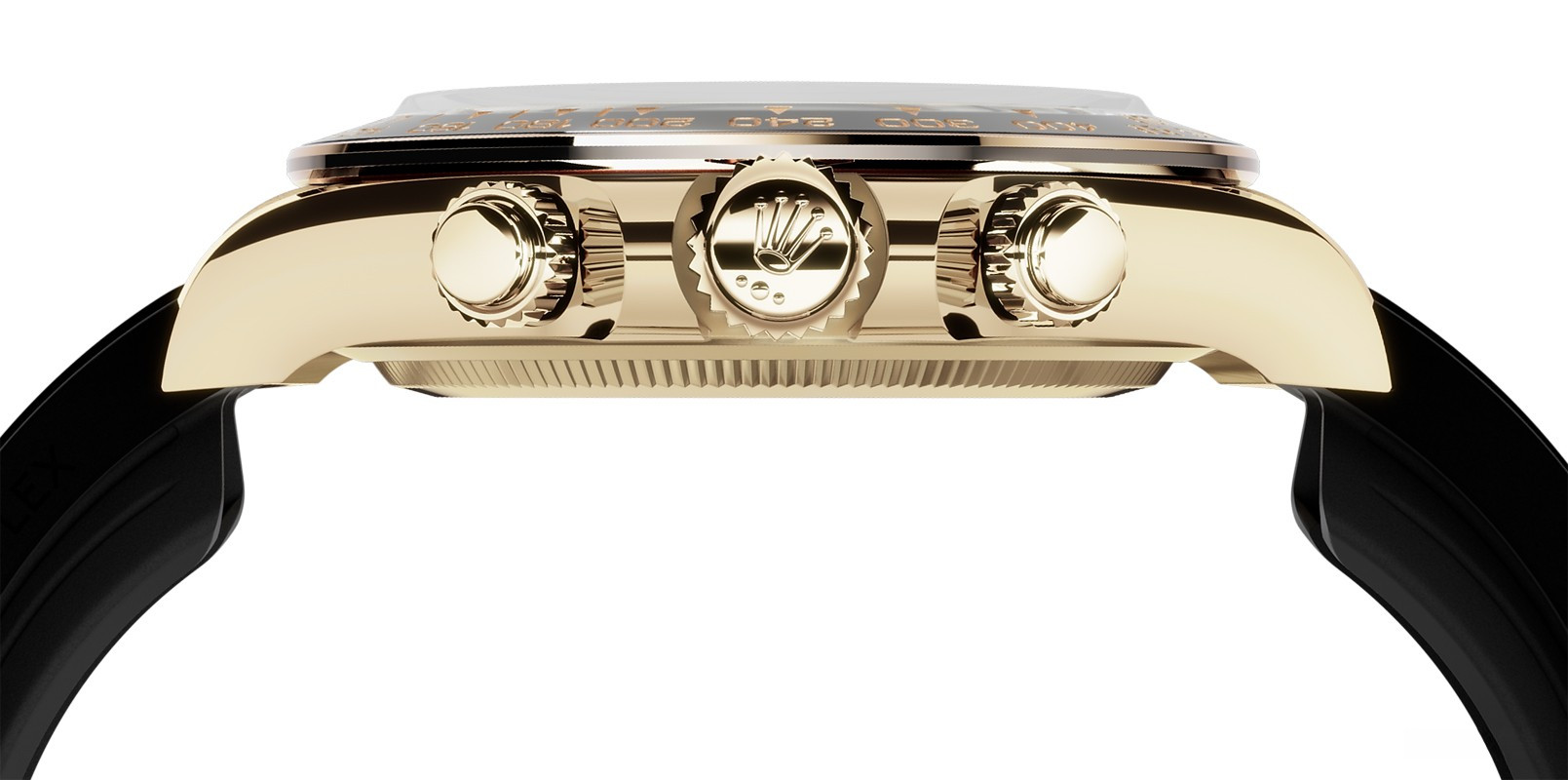 Новая модель Cosmograph Daytona, сочетающая высокие технологии и благородную эстетику, продолжает традиции легендарного хронографа. Корпус часов изготовлен из желтого золота 18к, циферблат золотистый с черным. Часы комплектуются каучуковым ремешком с золотой застежкой. Для проверки показателей точности хода часов в процессе эксплуатации компания Ролекс тестирует часы в собранном виде, что позволяет гарантировать их исключительные характеристики в ходе ношения в том, что касается точности, водонепроницаемости, автоматического подзавода и запаса хода. Внутри корпуса установлен автоматический механизм, Калибр 4131, обладающий запасом хода 72 часа.